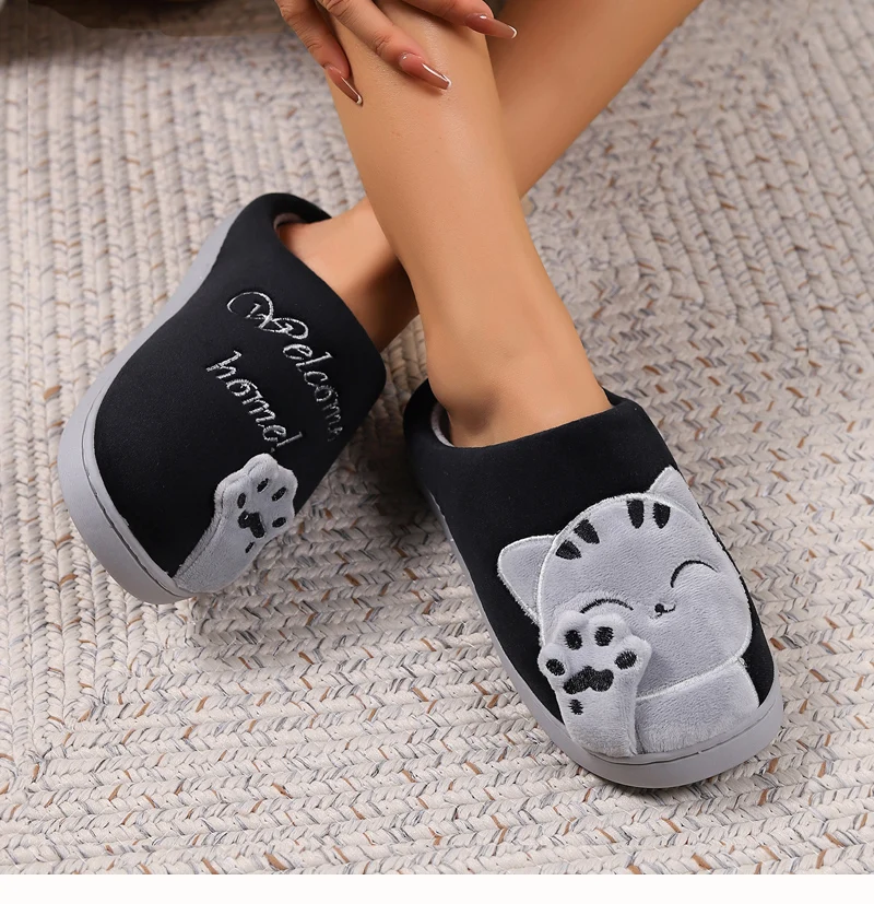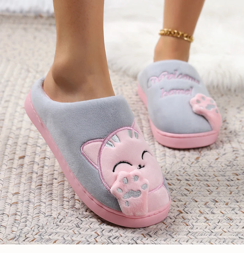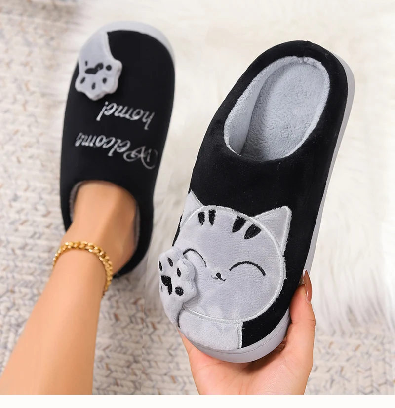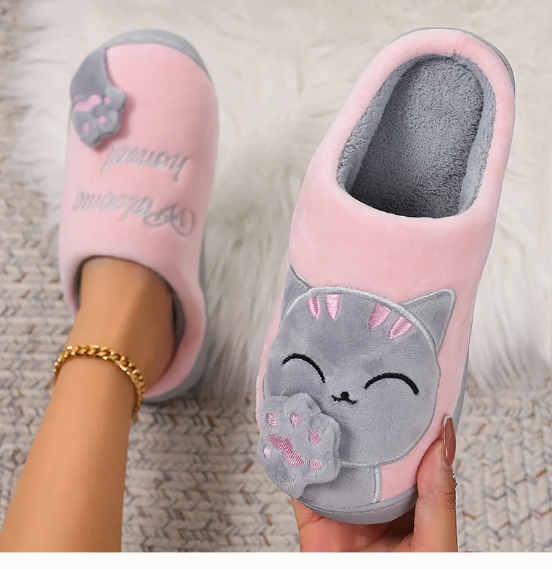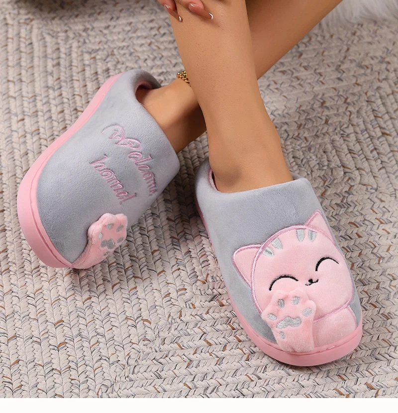 Winter Warm Fur Slippers Cartoon Cat Non-Slip Women and Men Soft House Indoor Home Bedroom Boys Girl Memory Foam Floor Shoes