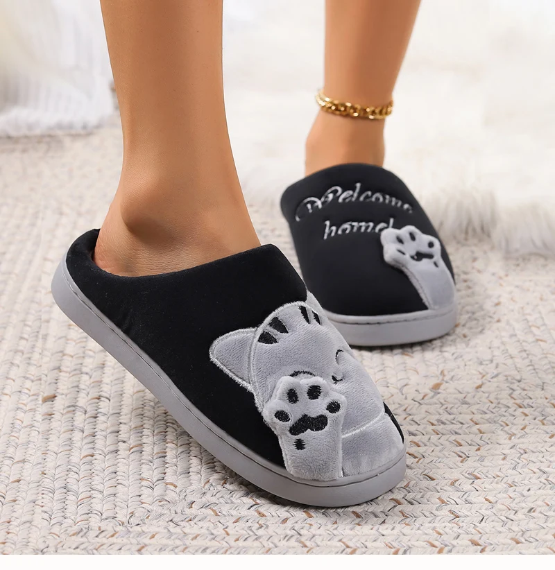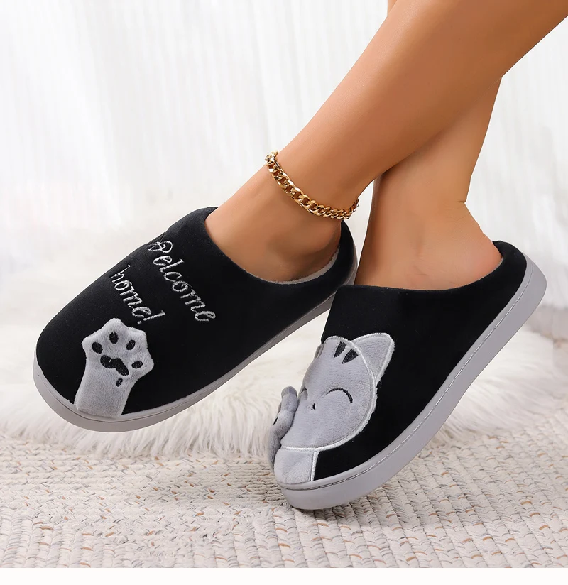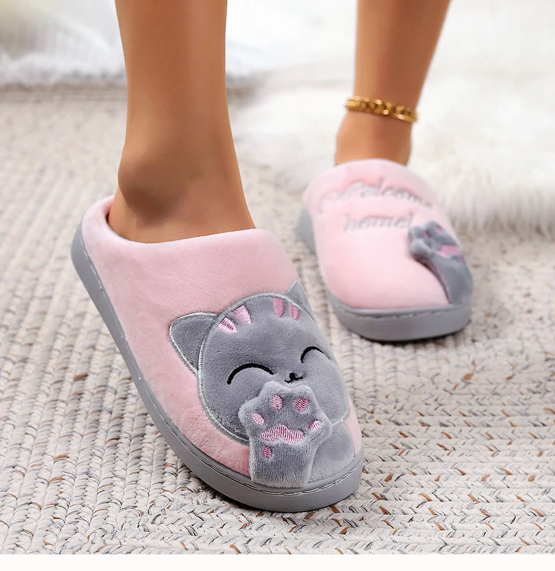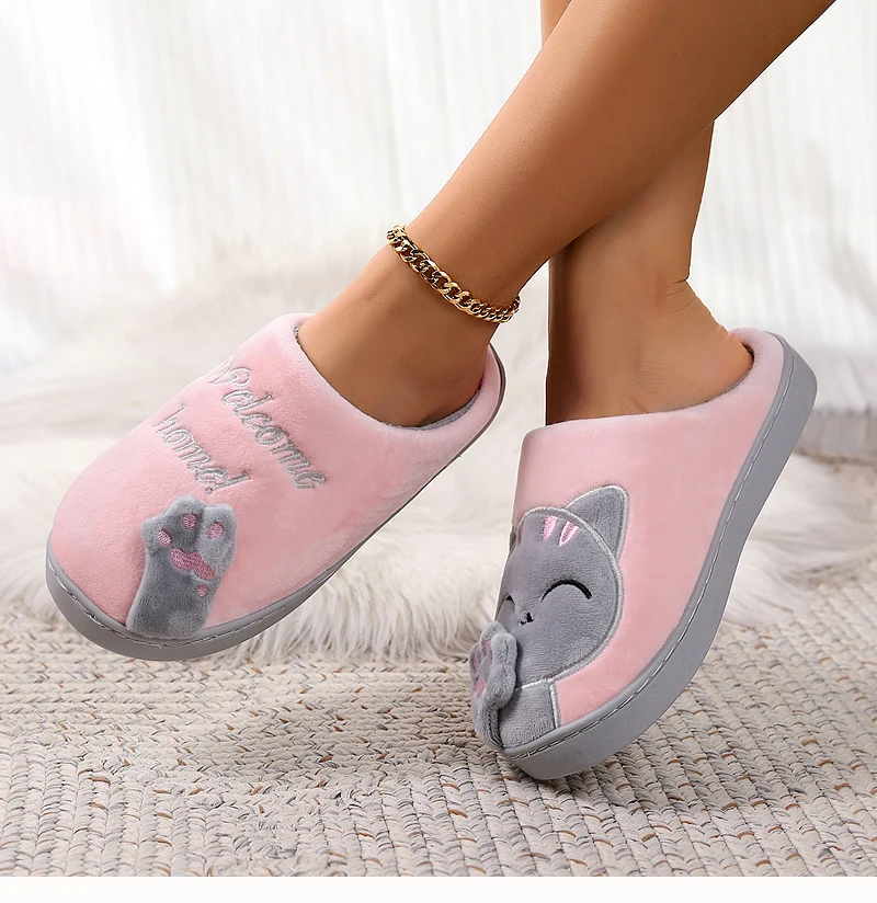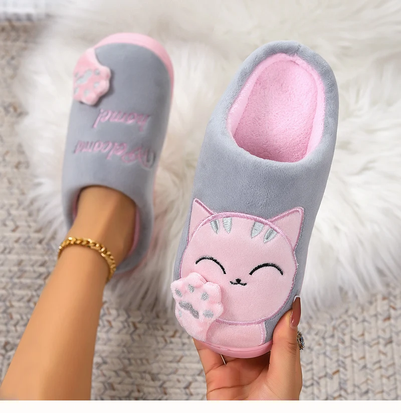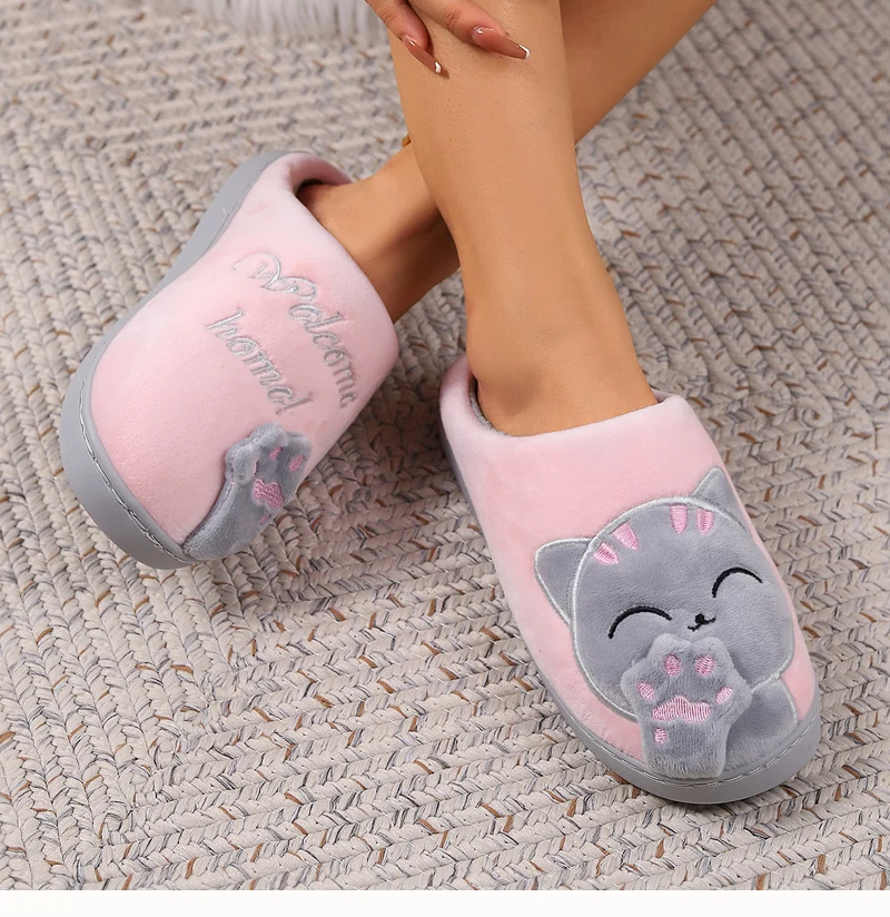 Winter Warm Fur Slippers Cartoon Cat Non-Slip Women and Men Soft House Indoor Home Bedroom Boys Girl Memory Foam Floor Shoes
